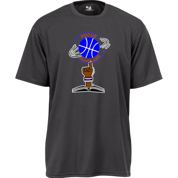 This tee has a LOOSE cut – please use the high end of the measurement ranges in the size chart. 100% Polyester moisture management/antimicrobial performance fabric; Badger sport paneled shoulder for maximum movement; Athletic cut – Self- fabric collar- Do