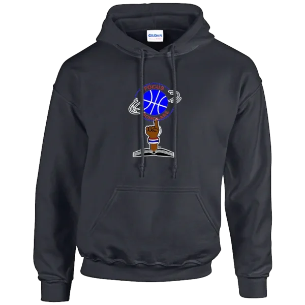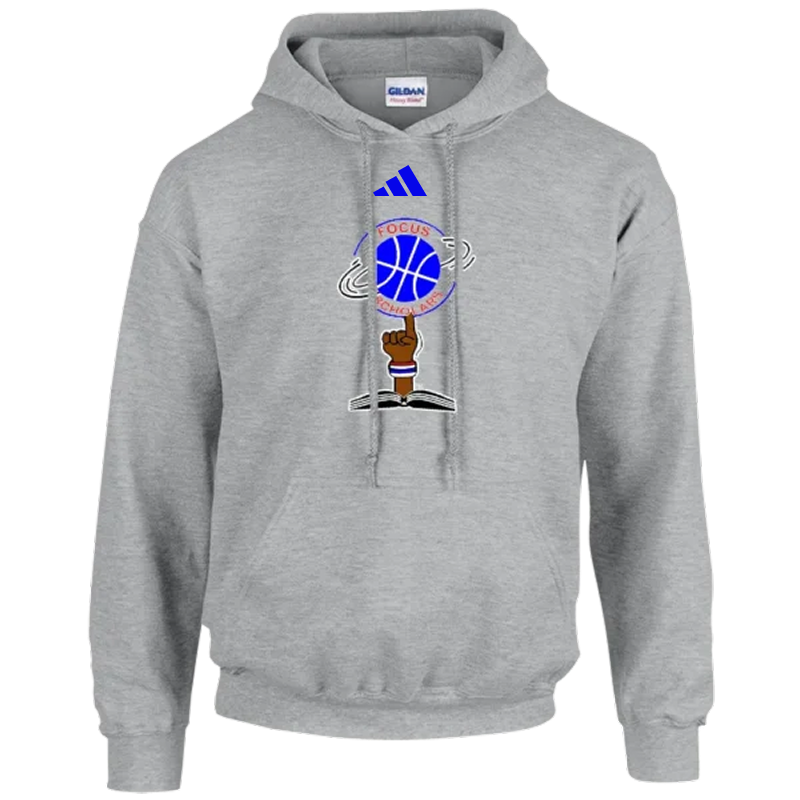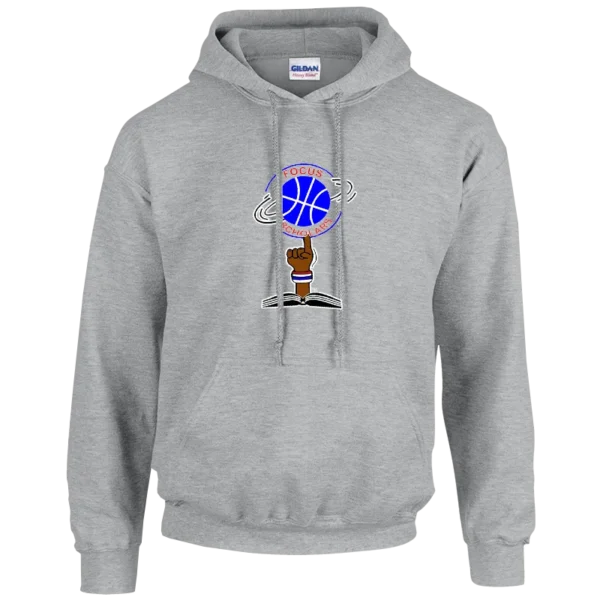 Fabric: 8 oz., 50% USA cotton, 50% polyester. Heather Sport colors: 60% polyester, 40% cotton. Made with 50% sustainably and fairly grown USA cotton. Feature: Pill-resistant air jet yarn. Double-needle stitching throughout. Double-lined hood. Pouch pocket
